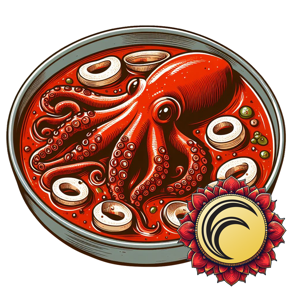 Calamari stuffed with onion, garlic, rice, tomatoes, salt, black pepper, mint leaves, parsley, squid, and tomato juice.